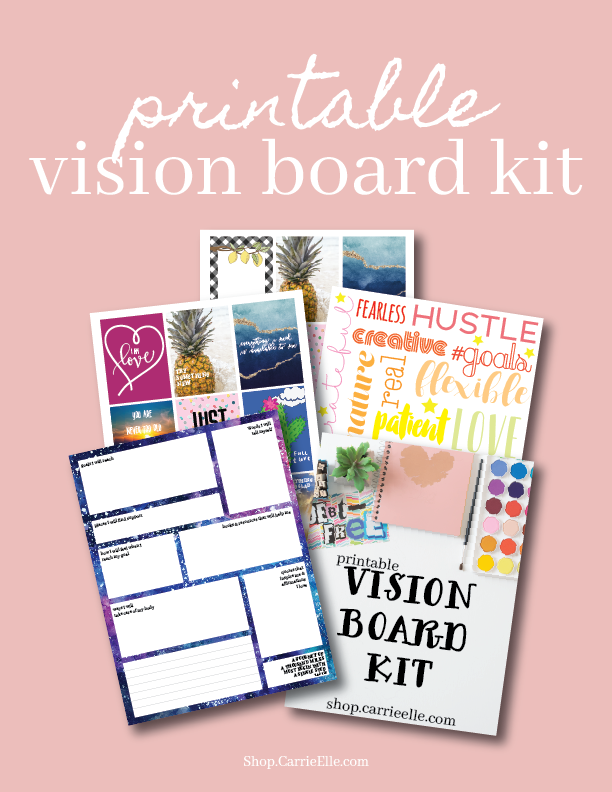 Carrie ElleI think you are going to love this! This printable vision board kit as an easy way to create a beautiful, inspiring, and functional vision board that you can refer to all year long.