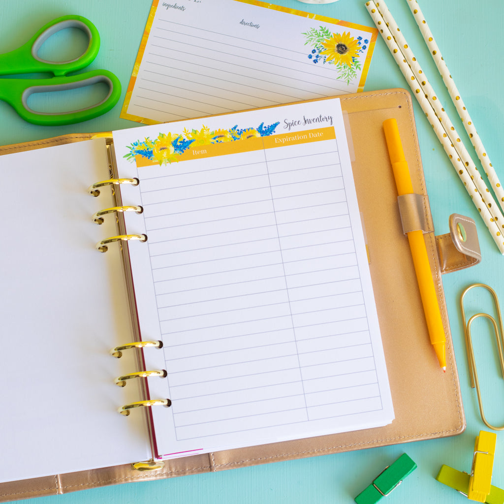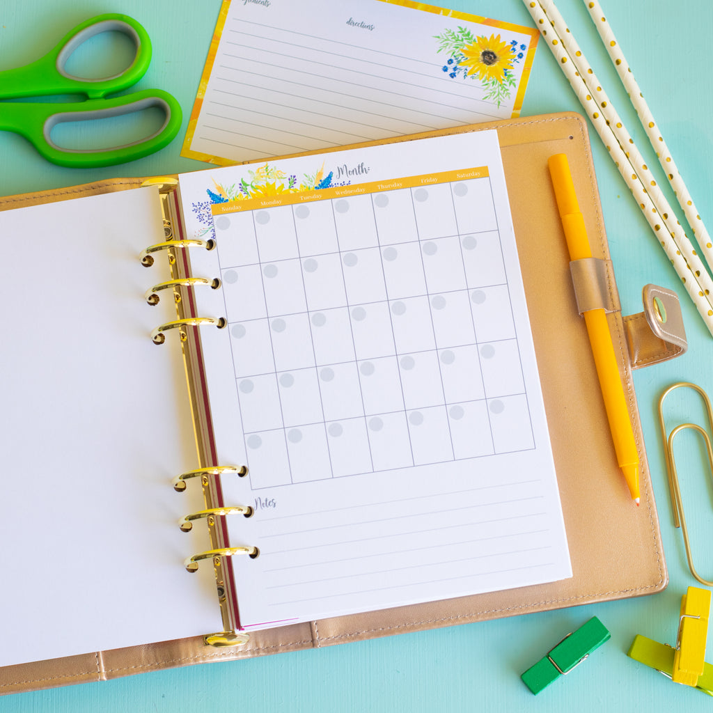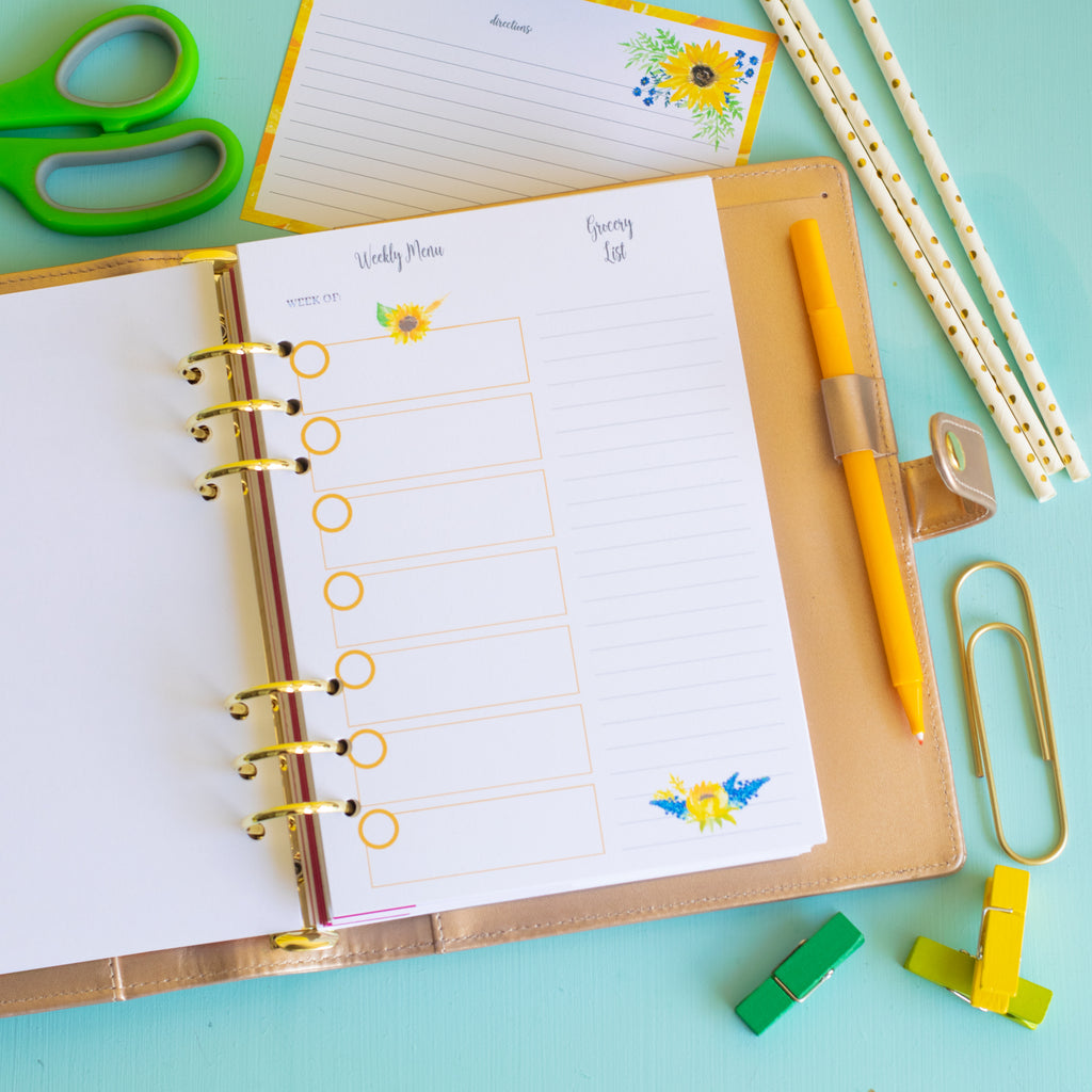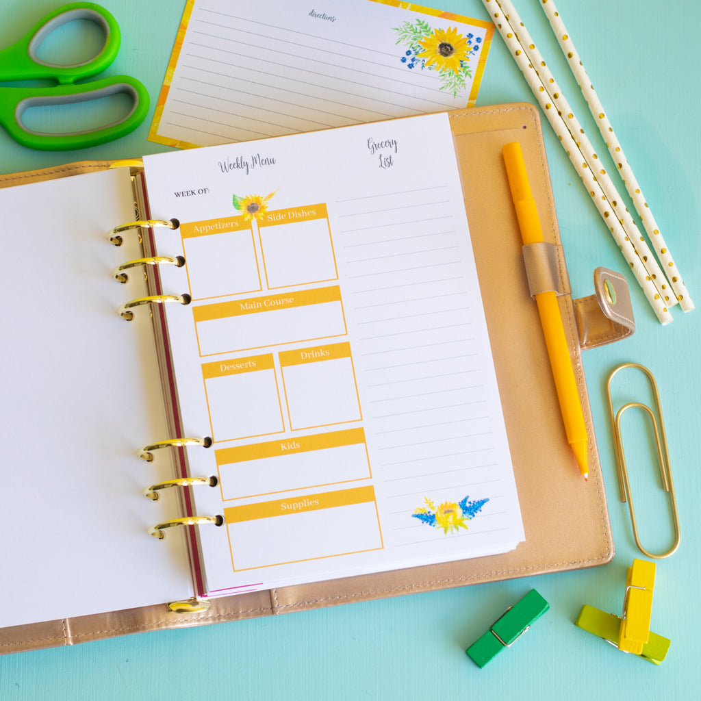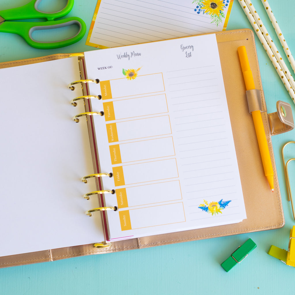 Carrie ElleGet ready to get dinner under control with this set of printable A5 sunflower-themed Meal Planner inserts! This pretty planner is not only beautiful but also very functional.