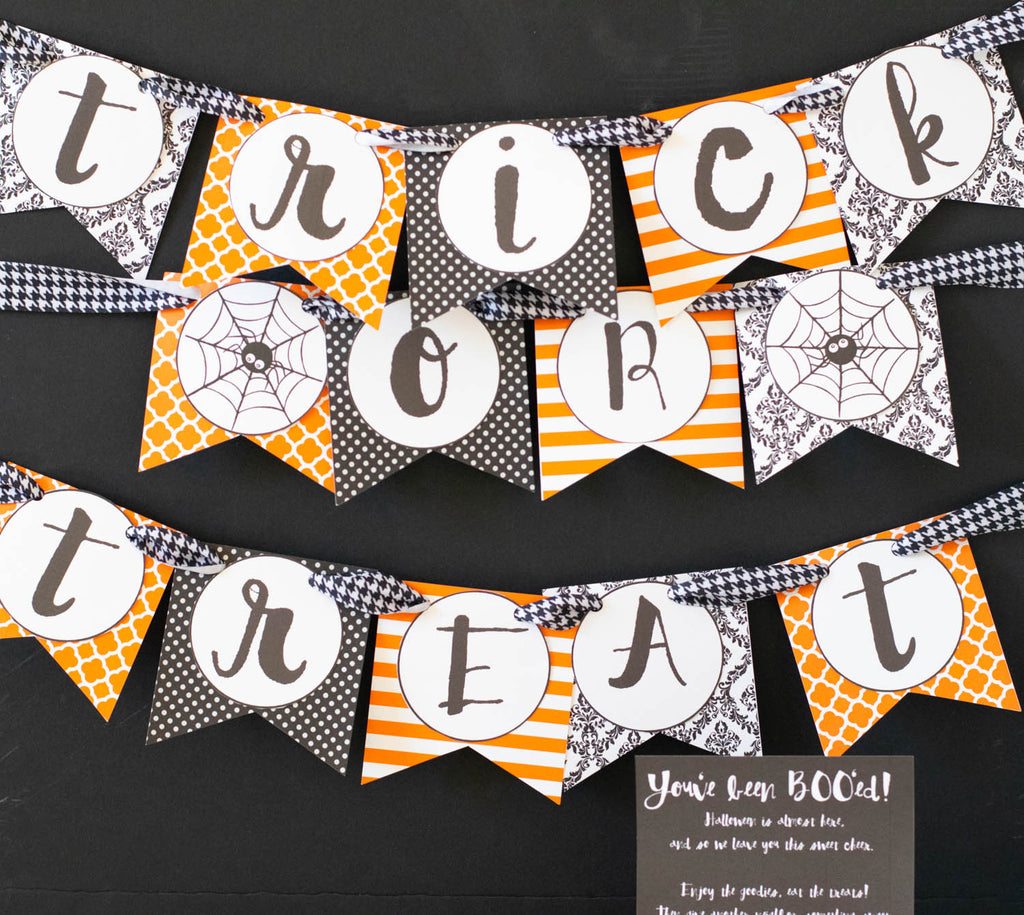 • “Trick-or-Treat” banner (includes blank circles if you would like to write in your own Halloween message)