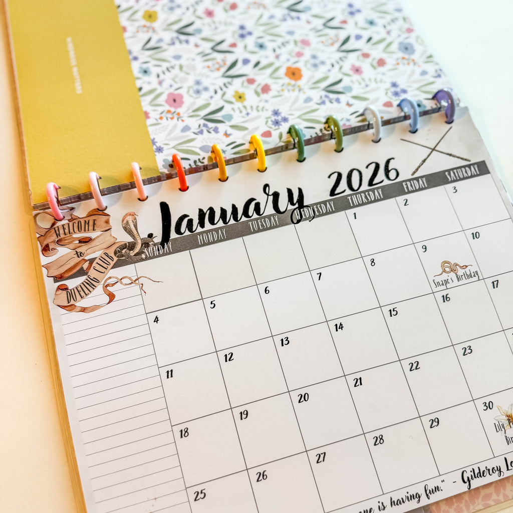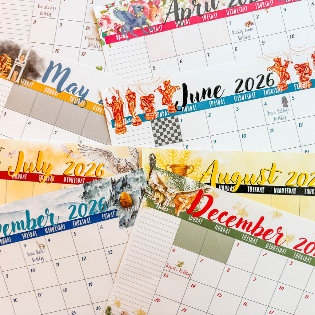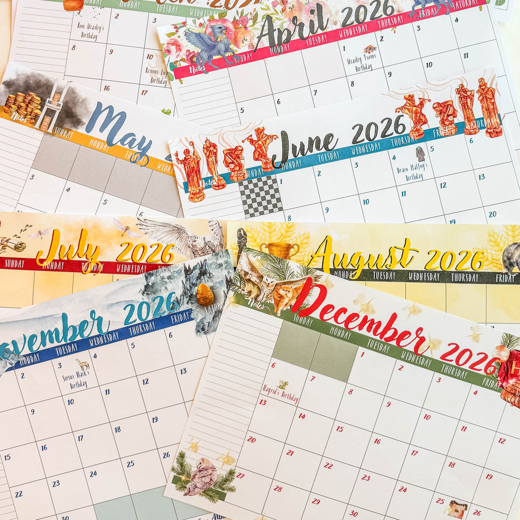 I designed this whimsical, fan-inspired calendar for fellow Potter lovers who want a touch of Hogwarts charm in their planners or on their walls. Each month features fun details (you might spot a Dueling Club, a Gringotts vault, or even a nod to the Tri-Wizard Tournament!), and a magical quote to keep you inspired all year long.