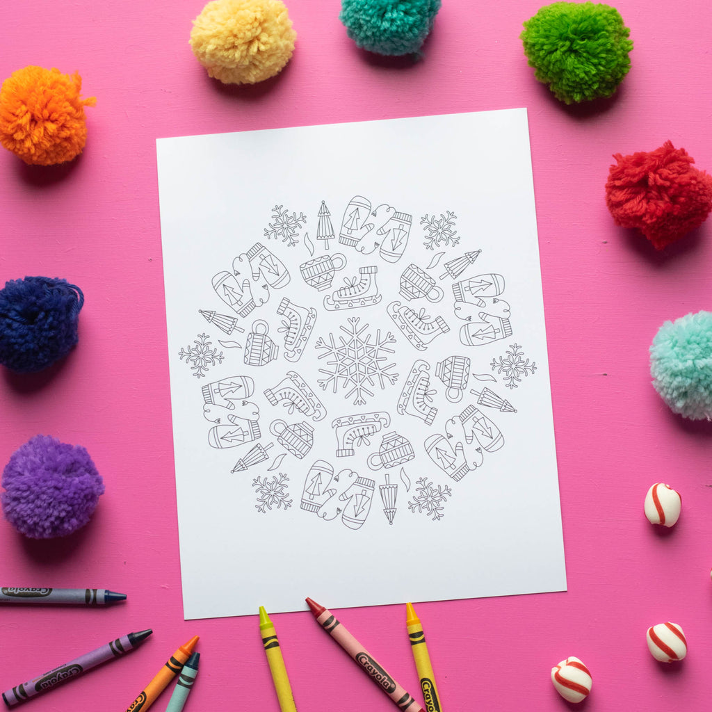 - Ice Skates & Mittens Mandala Coloring Page
