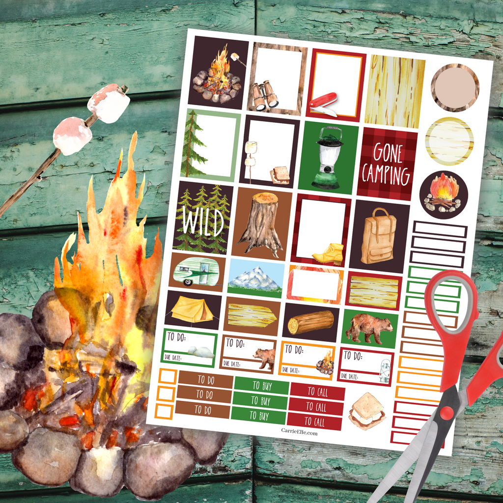 Your printable camping planner stickers are designed to be printed on 8.5x11 paper. We recommend full sheet labels, which you can buy at your local Walmart or Target or order online. We also like Avery and Silhouette sticker papers. You can cut with scissors, or a cutter like Cricut or Silhouette.