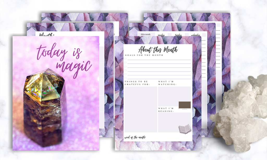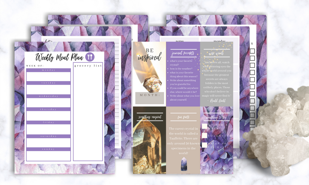 Carrie ElleThis set of printable crystal Happy Planner inserts haseverything you need to plan your day, plan your week, plan your month, and even meal plan and journal! You'll love the pretty crystal print for these planner inserts.