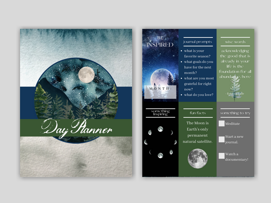 Printable 8.5 x 11 Moon-Themed Day Planner