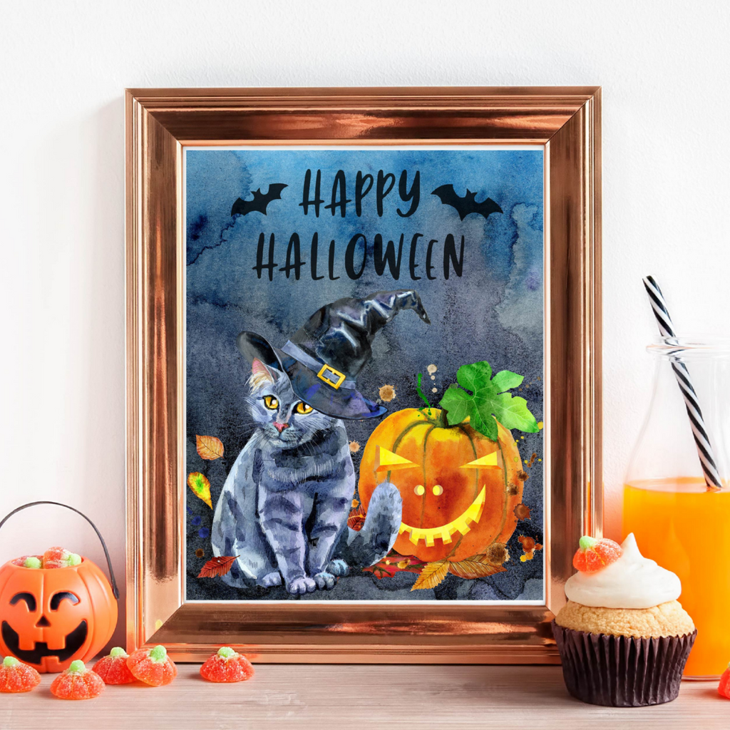 Printable Happy Halloween Black Cat 8x10 Wall Art